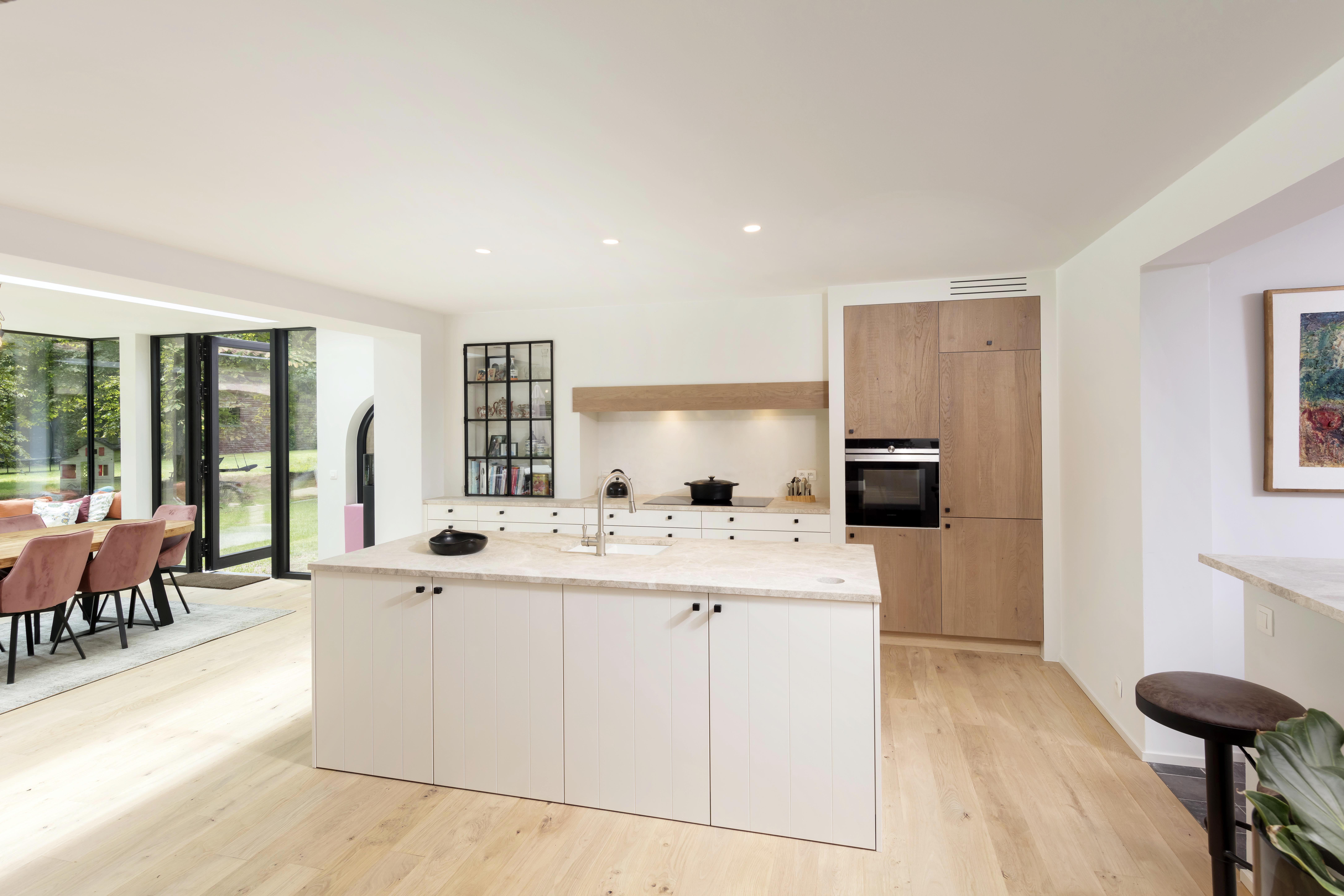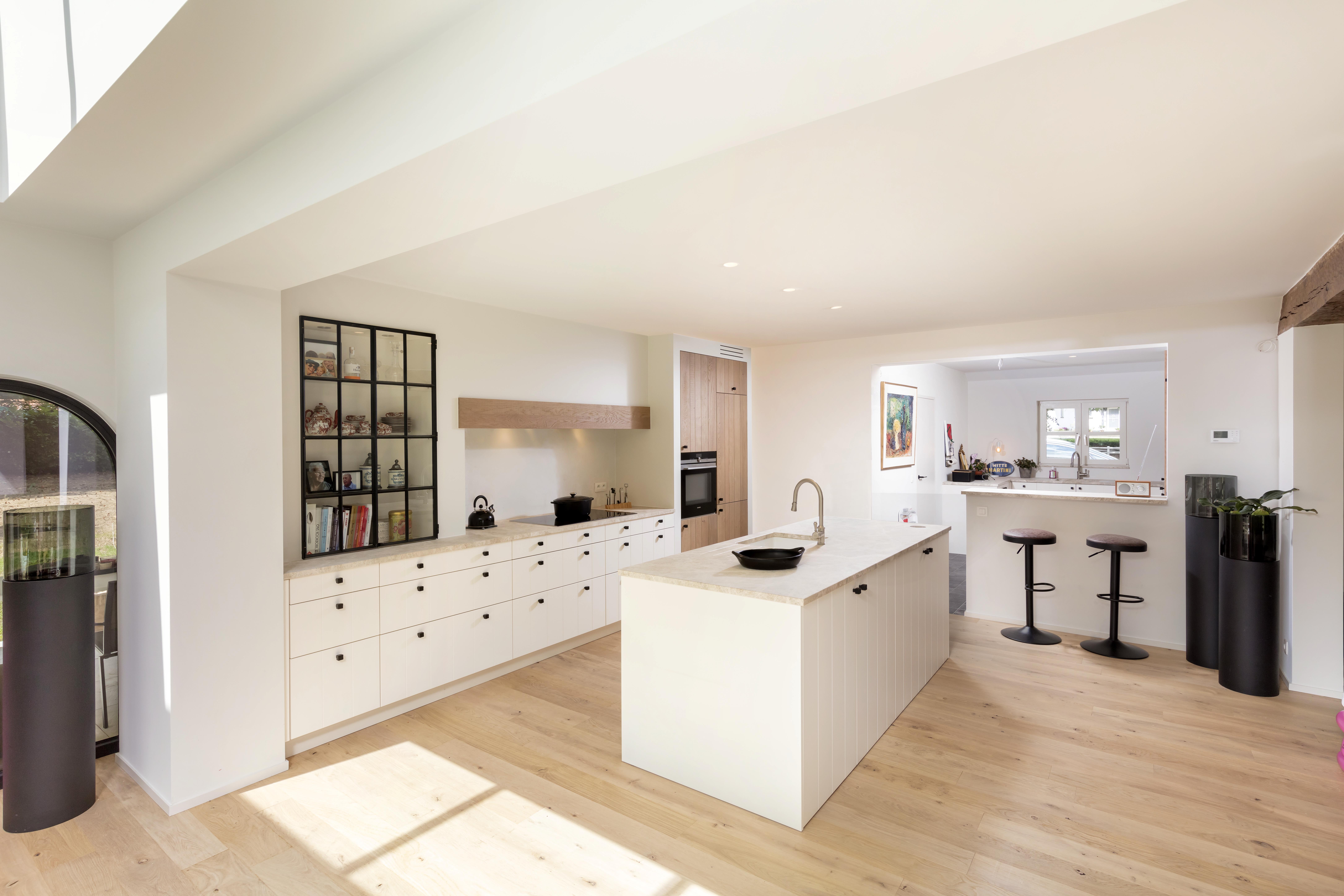 De wens van de klant was dat zijn nieuwe keuken paste in de landelijke omgeving van de woning. Met het ontwerp op maat hebben we de landelijke stijl van buiten naar binnen gebracht.